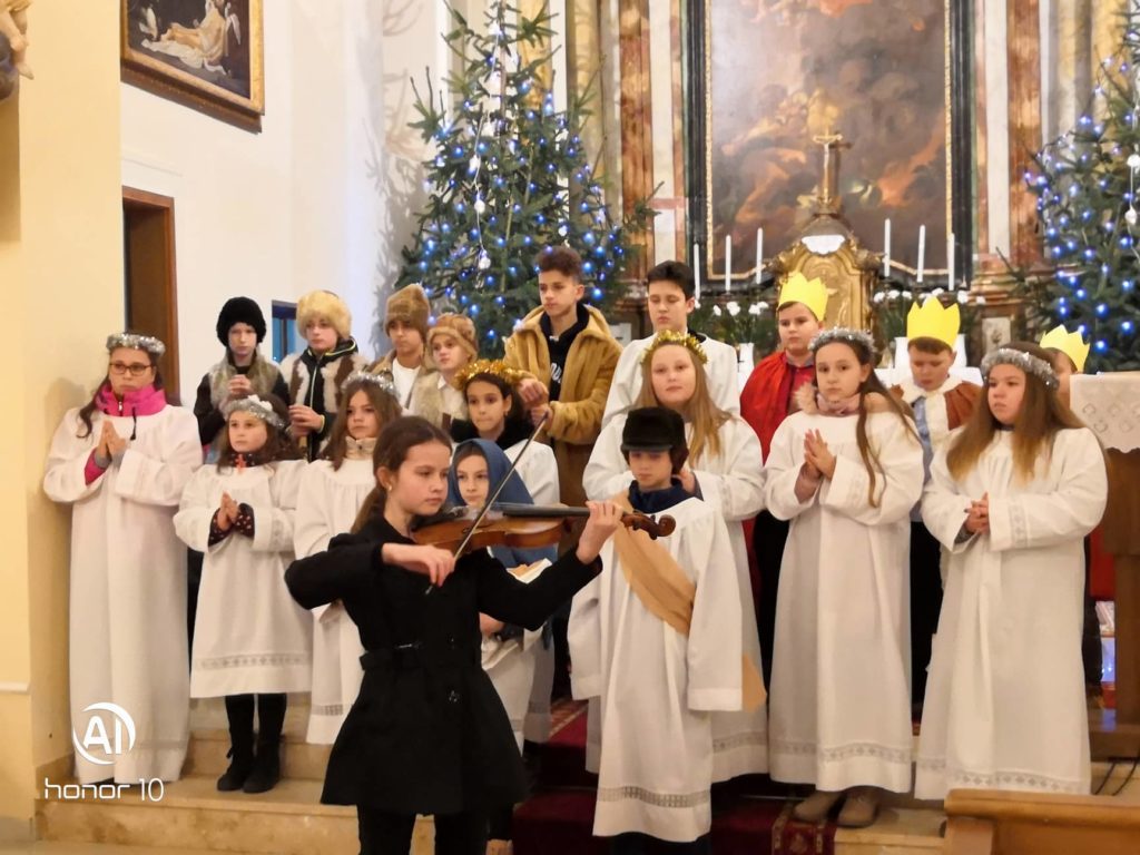Szenteste délutánjára nagy izgalommal készülődtünk, hogy a templomban minden kedves megjelent hívőnek, szülőnek, gyereknek, rokonnak, ismerősnek átadhassuk szerény karácsonyi ajándékunkat, ezzel a kis előadással is méltó módon készülve a kis Jézus születésére. Bertalan Tamara hegedűjátékával, Rácz Szabolcs furulyakíséretével tette még felejthetetlenebbé az előadásunkat. A betlehemes során az ünnep fénye és öröme töltötte el mindannyiunk szívét.