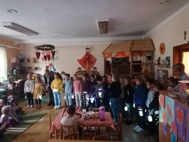 Az ovisok hatalmas szeretettel és lakomával várták diákjainkat. Ők is megmutatták nekünk tudásukat a szenttel kapcsolatosan. Közös élményeket gyűjtöttünk; a fényt, amely a jó cselekedetet jelképezi, megosztottuk egymással.