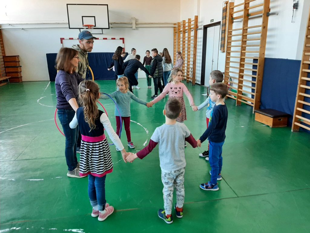 A negyedik iskolanyitogatón vidám, sportos feladatokkal mulattattuk az időt az óvodásokkal.